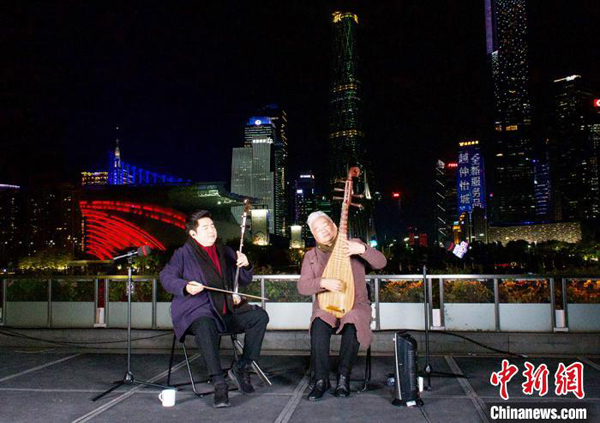 中新网广州1月7日电 (记者程景伟)一场特别的“国乐盛典”7日晚在珠江水畔、广州塔下上演。竹笛、琵琶、二胡、古筝、三弦……众多传统中国乐器轮番“开腔”,或高亢或低回,或悠扬或激昂。据介绍,该场表演为大型创新性中国经典音乐竞演节目《国乐大典》第三季专场节目。