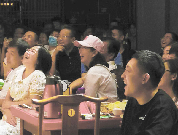 看演出的观众笑得前仰后合