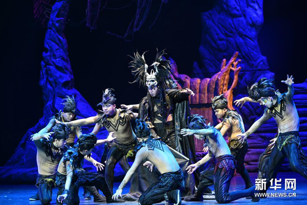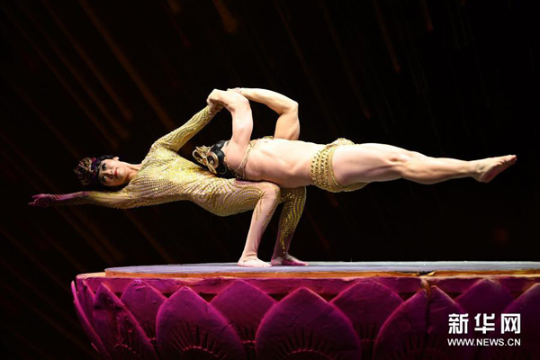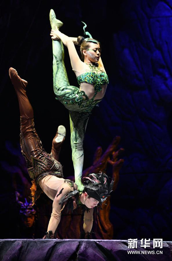 1月13日晚,复排的中国杂技剧《天鹅湖》在福州海峡文化艺术中心上演。该剧在2004版杂技剧《天鹅湖》的基础上创新,在保留原版“肩上芭蕾”“四小青蛙”等经典高难度动作的同时,增加了众多中国元素。新华社记者林善传 摄 [责编:朱强] 来源:新华网