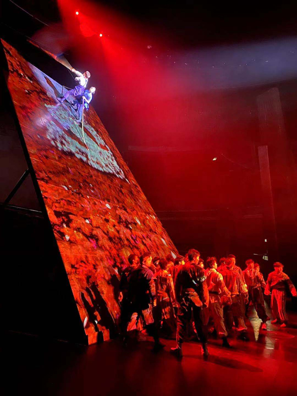与传统剧场形态不同,杂技剧《铁道英雄》的表意空间是多层次的。