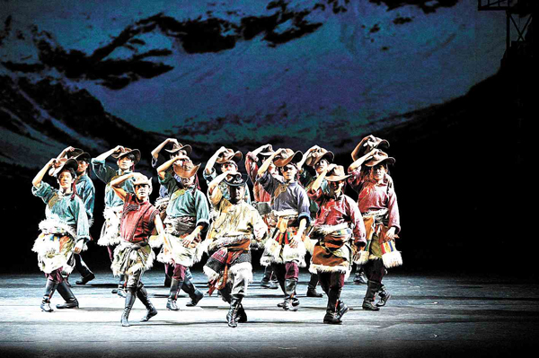 舞剧《天路》从藏族同胞视角,讲述了在青藏铁路二期工程修建过程中,不畏艰险开拓祖国西藏“天路”的铁道兵筑路人,与纯洁质朴的藏族同胞心手相连的动人故事。舞剧通过对汉藏两个民族、军民两个群体的细致刻画,彰显出民族团结、军民一心的精神内涵。