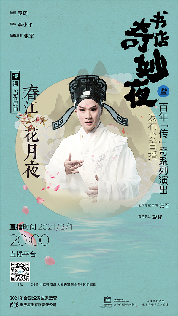 该活动以“过去”“现在”“未来”为概念,直播发布了由张军主演的《春江花月夜》全国巡演信息。此次巡演由重庆演出公司全国独家运营,将于7-12月前往深圳、广州、南宁、长沙、昆明、重庆、成都、武汉、西安、北京、廊坊、苏州、杭州等城市,开启昆曲作品“票房奇迹”传世名篇的美妙之旅。