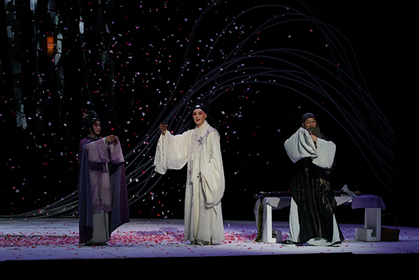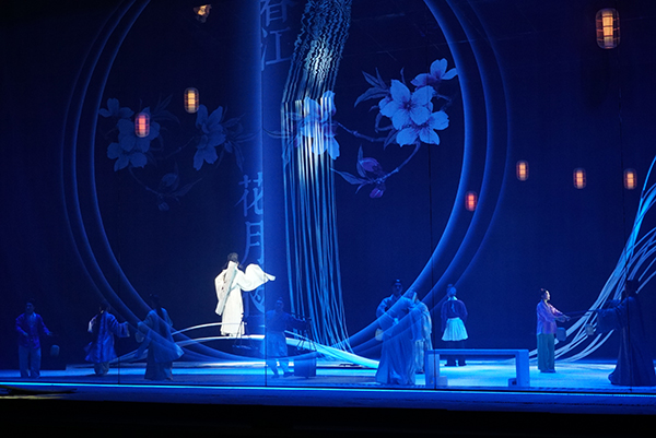 昆曲《春江花月夜》是一部关于爱、关于时间、浪漫至极却引人深思的作品,故事探索人情之痴狂与真挚。江水长流,月落日升,轮回循环,永恒不灭,而人生短暂,人情无常。“须臾”与“长存”的对照,是人生最大憾恨,也是文人浩叹缘由,历来多少篇章以此为主题,而这部昆剧,却是宇宙意识与人间情意一笔双写,其间未必只有对比,更多交相渗染。这样的戏剧结构,其实正呼应着张若虚《春江花月夜》原诗本身的结构。