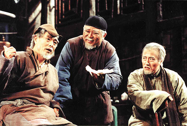 《茶馆》的出场人物60余个,笔触精炼,寥寥几笔,形神皆备,无一重复。正如老舍所说,他对这些人物十分熟悉,都给他们“批过八字,算过命”。为了在舞台上成功塑造这一个个角色,演员们着实下了苦功。