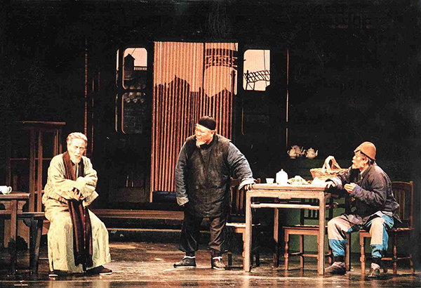 1958年3月29日,《茶馆》在首都剧场公演,反响非常强烈。后来虽两度停演,也终于在1979年2月以原班人马复排演出。1980年,《茶馆》应邀赴西德、法国、瑞士访问演出,这是中国话剧第一次走出国门。其后,又到了日本、新加坡、加拿大等国家。在柏林有一场演出,《茶馆》谢幕24次,观众欢呼、跺脚长达7分钟。1992年7月16日,北京人艺建院40周年之际,《茶馆》在首都剧场演出第374场,也成为老版《茶馆》的“悲壮”告别。