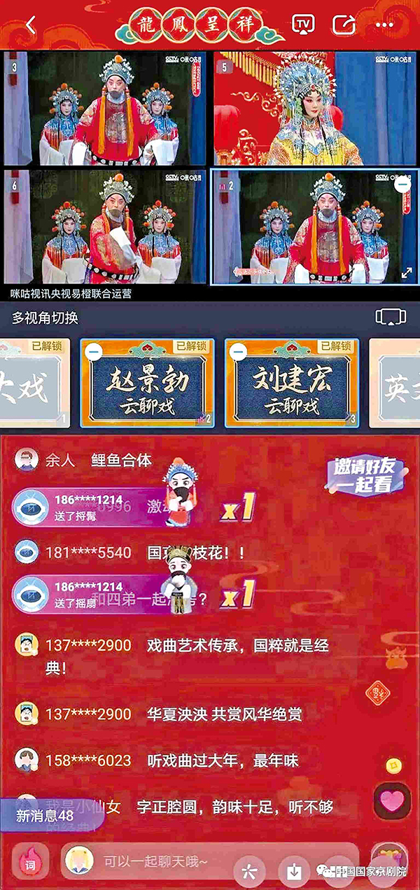 国家京剧院经典大戏《龙凤呈祥》5G“云演播”时观众热情互动。