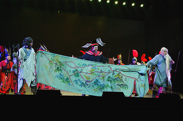 大型历史歌剧《张骞》,图为张骞为汉朝带回西域三十六国地图一幕。