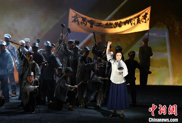 中新网北京3月25日电 (记者 应妮)“要上高山那就莫怕风,要下大海呀就莫怕龙。好花不怕霜雪打,霜雪越打花越红哟……”由湖南省文化和旅游厅和株洲市委、市政府重点打造,株洲市戏剧传承中心排演的民族歌剧《英·雄》24日晚在国家大剧院上演。
