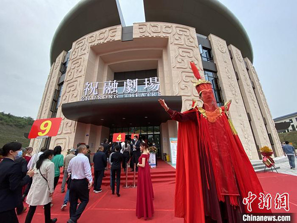 中新社衡阳4月24日电 (王昊昊)湖南衡阳南岳祝融火文化园24日开园,园内的祝融剧场首演。