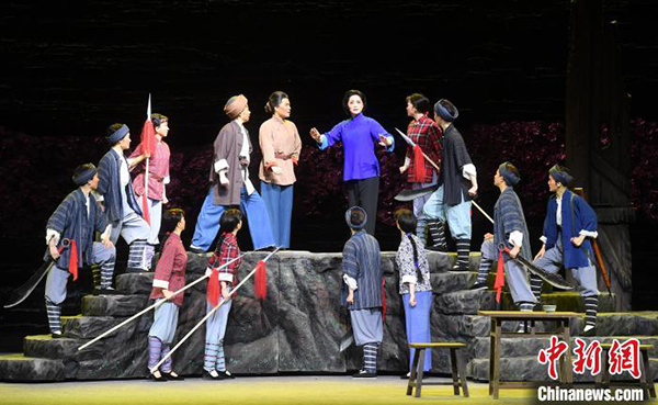 中新网福州4月26日电 (记者 刘可耕)“红梅花儿开,朵朵放光彩”。25日晚,由福建芳华越剧院复排的越剧《江姐》在福州芳华剧院演出,献礼建党100周年。