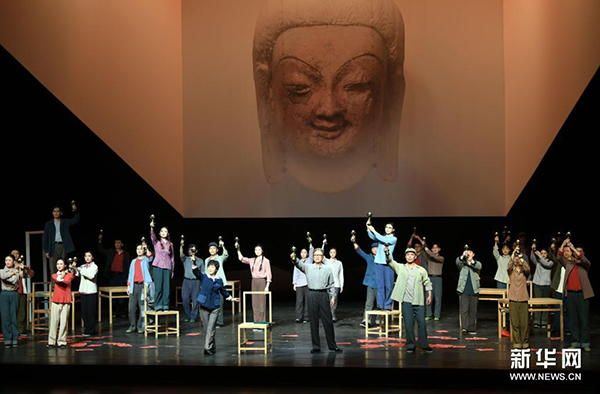 5月12日,沪剧名家茅善玉(左一)在《敦煌女儿》中饰演樊锦诗。新华社记者 金良快 摄