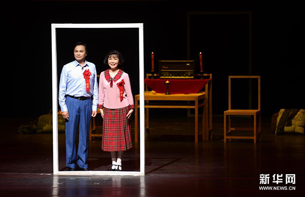 5月12日,茅善玉(右)、钱思剑在沪剧《敦煌女儿》中分别饰演樊锦诗、彭金章。新华社记者 金良快 摄