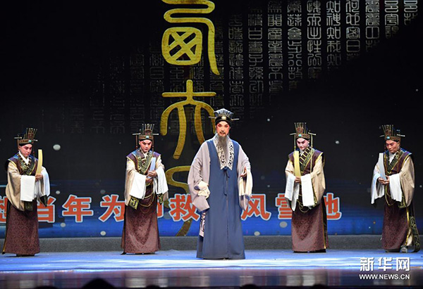 5月15日,演员在开幕演出上表演秦腔《关西夫子·天地有知明镜悬》。新华社记者 邵瑞 摄