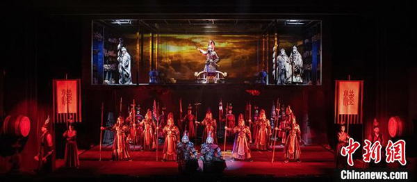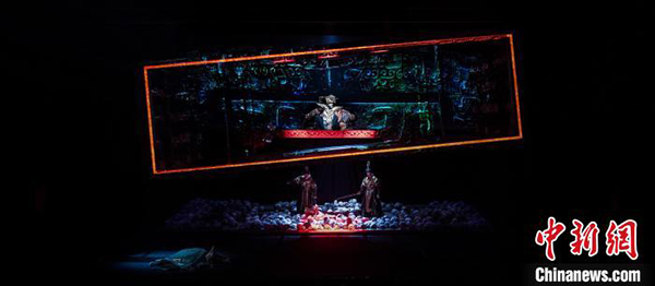 中新网北京6月15日电 (记者 应妮)大型传奇历史话剧《汉武大帝》于端午节在北京天桥艺术中心演出3场。对汉武帝不落窠臼的演绎、多重空间的舞台布局、泛东方文化的舞美呈现,上演了一出令观众惊艳的大戏。