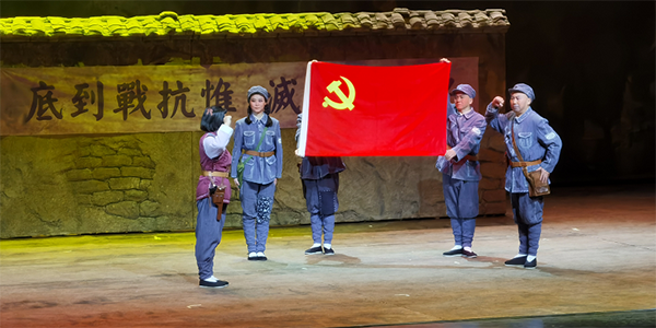 河北新闻网讯(杨慧丽 张新晴)“救危亡驱敌寇 挂云山战地黄花竞风流……”饰演吕秀兰的青年京剧演员张伟欣唱做俱佳,以气托声,以声送字,以字达情,以情化腔,唱腔感人。只见她一会儿转着圈儿,一会儿做各种各样的动作,连亮相的姿势都十分精美。