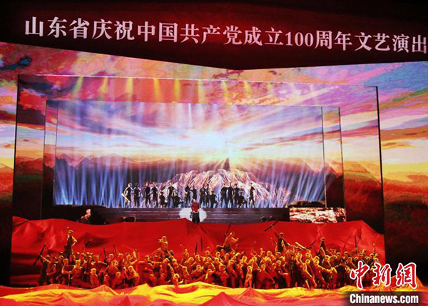 山东省庆祝中国共产党成立100周年文艺演出27日晚在山东省会大剧院举行。 赵晓 摄