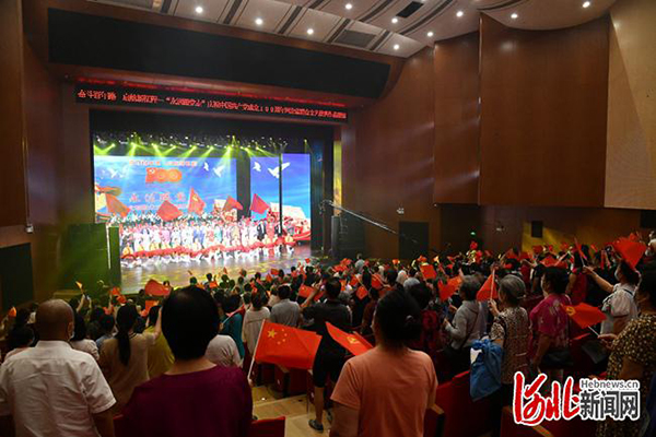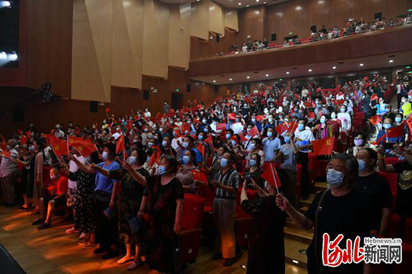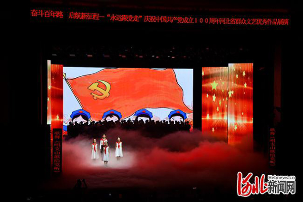 河北新闻网讯(王建)国旗、党旗在观众手中不停地舞动,台上台下齐声高唱,“没有共产党就没有新中国,没有共产党就没有新中国……”6月29日晚,由河北省文化和旅游厅主办,各市文化和旅游部门、河北省群众艺术馆承办的“奋斗百年路 启航新征程——永远跟党走 庆祝中国共产党成立100周年河北省群众文艺优秀作品展演”在河北省群众艺术馆虹光剧场精彩上演。