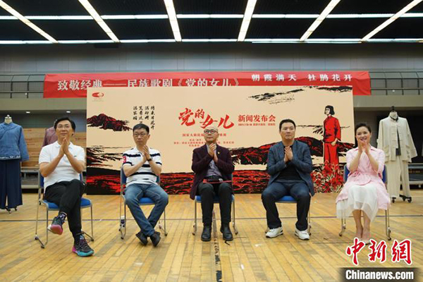中新网北京7月5日电 (记者 高凯)5日下午,国家大剧院版经典民族歌剧《党的女儿》在大剧院排练厅举办新闻发布会。国家大剧院副院长赵铁春与指挥李心草、导演汪俊等主创主演悉数亮相,讲述分享了该剧的创作初衷和剧目亮点。