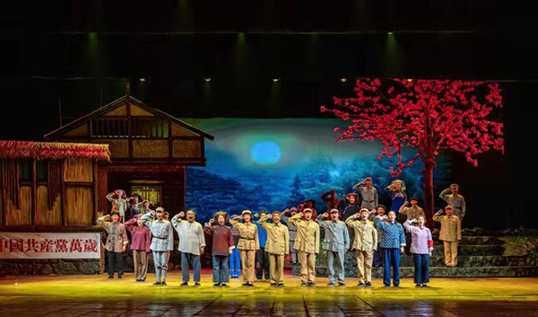 据了解,在创作初期,该剧主创团队多次深入百色革命老区采风,重走当年红军走过的革命道路,参观当地的革命纪念馆,还深入百姓家中,通过采访和对话获取关于当年红军生活的点点滴滴,收集了大量的真实史料。为了更好地塑造角色、展现出符合角色和时代背景的体貌特征,主演杨建伟等多名演员在短时间内集中减肥。“面黄肌瘦”的他们登上舞台,“成全”了一个个令人印象深刻的角色,倾情讴歌祖国、讴歌人民、讴歌英雄,向革命先辈致敬。