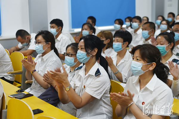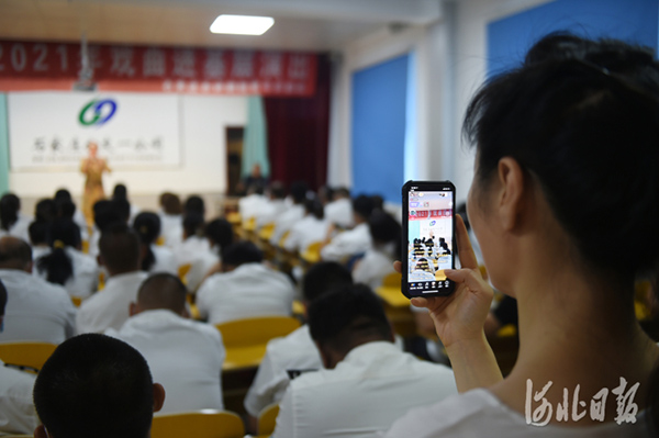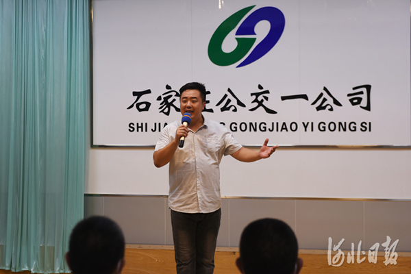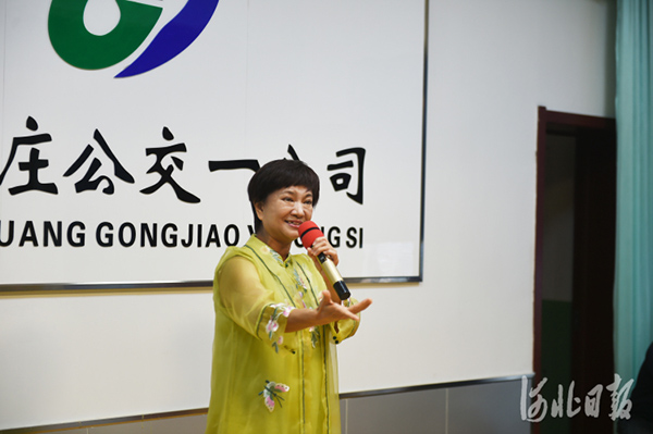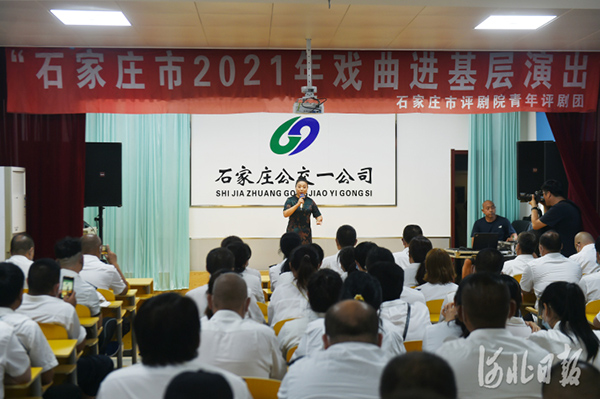 2021年7月13日,石家庄市青年评剧团来到石家庄市公交一公司进行专场演出,评剧演员们为公交职工表演了《 绣红旗》《 金沙江畔 》等经典唱段,受到公交职工们的欢迎。河北日报记者史晟全摄影报道