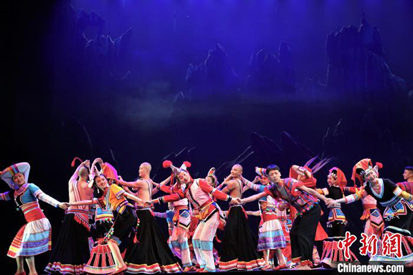 中新网昆明7月15日电 (罗婕)15日晚,民族史诗舞剧《阿诗玛》在云南省歌舞剧院正式公演,以全新的面貌和绚丽多彩的彝族各支系民间舞蹈,展现云南民族文化的特色,弘扬民族精神。