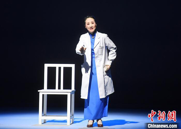 《林巧稚》主演、国家一级演员、越剧张派非遗传承人郑全在剧中饰演林巧稚。 记者刘可耕 摄