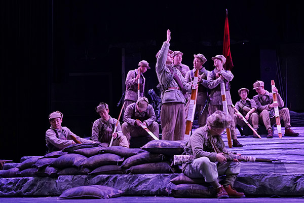当天的彩排现场,随着舞台的转动,四川男儿在入朝抗美期间与家人来往的书信内容,跨越了时空的阻碍,通过四川曲艺这一艺术载体实现了战场与成都的两地对话。剧中,家书是在长途奔袭的崇山峻岭间写下的情书,是在硝烟漫的生死战场上写下的血书,是年迈母亲寄往遥远战场的叮嘱,也是风华正茂的少女写给前线未婚夫的约定……它们带领着观众一步步走进那段激情燃烧的红色岁月,回顾党领导抗美援朝战争的光辉历程。
