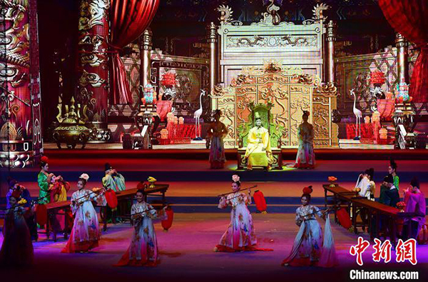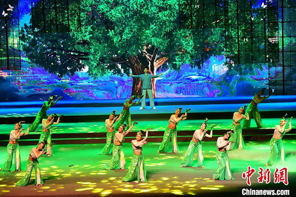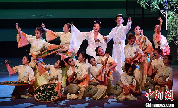 图为7月21日晚,史诗音乐剧《茶道:一叶乾坤》在福建大剧院上演。 张斌 摄