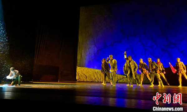 中新网西宁7月24日电 (李江宁)23日晚,青海果洛藏族自治州原创现实题材民族舞剧《永远的长征》”在青海师范大学完成首演。