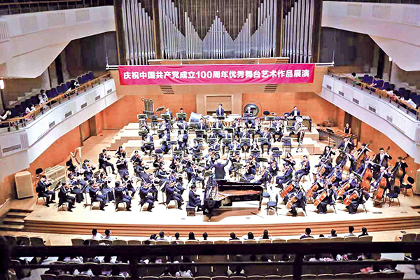7月30日,庆祝中国共产党成立100周年优秀舞台艺术作品展演作品《龙声华韵》“浦东交响”音乐会在北京音乐厅上演。“浦东交响”是中国交响乐团以“庆祝改革开放40周年”为主题创作的交响乐作品。 石 磊 摄
