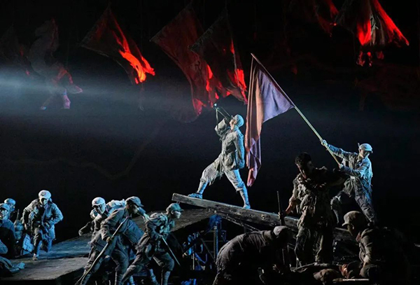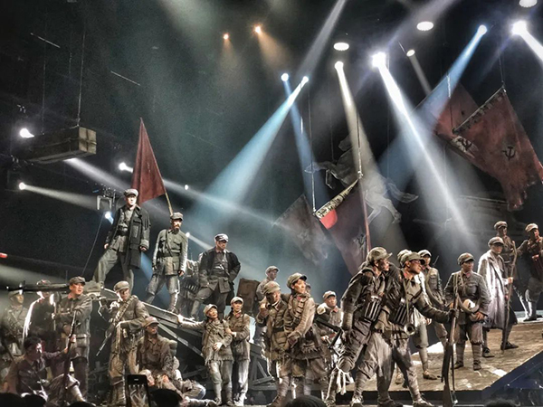 浙江演艺集团党总支书记、董事长王文龙回顾起演员们的排演经历至今仍颇为感慨,3块木板组成雪山,一条塑料薄膜当成大渡河,竟然演出了千军万马的效果。演员们一次次从木板上滚下来、爬回去,每个人的身上都是青一块紫一块。有人摔伤了,有人病倒了,每个人的身体几乎透支,却无人退缩。这是一种怎样令人感动的精神气场!