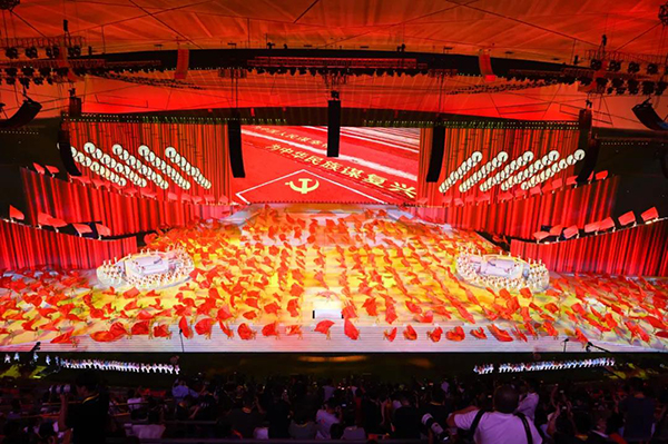 庆祝中国共产党成立100周年的大型“情景史诗”文艺演出《伟大征程》,以其创新的文艺表达形式和饱满的精神文化内涵,从历史厚度、现实温度、国际高度追溯了百年来中国共产党团结带领中国各族人民不懈奋斗的辉煌历程,展现了中国共产党坚守“全心全意为人民服务”的根本宗旨所创造的历史性成就和变革,阐释了当今中国走上世界舞台携手共建“人类命运共同体”的核心理念。“新时代”需要新的文艺形式对其进行多维度、全方位、立体式的回应与表达。《伟大征程》文艺演出正是给我们建构了一个新时代的新的文艺坐标,以其形态之新、符号之新、谋篇之新的创新尝试综合运用现代传媒技术呈现出震撼人心的视听盛宴,描绘了一幅宏伟壮丽的艺术画卷。