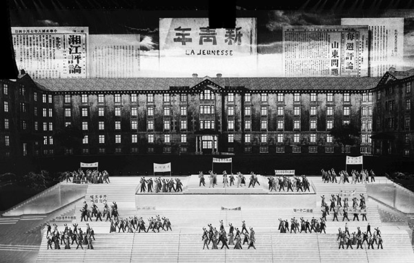 大型情景史诗《伟大征程》中戏剧与舞蹈《破晓》运用“戏剧表演5G即时电影拍摄”技术。 本报记者 卢 旭 摄