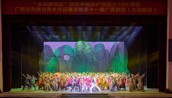 由广西壮族自治区党委宣传部、广西壮族自治区文化和旅游厅出品,广西戏剧院创作排演的彩调剧《新刘三姐》于8月5日晚在南宁剧场上演,作为最后一台竞演剧目参加自治区党委宣传部、自治区文化和旅游厅举办的第十一届广西剧展。