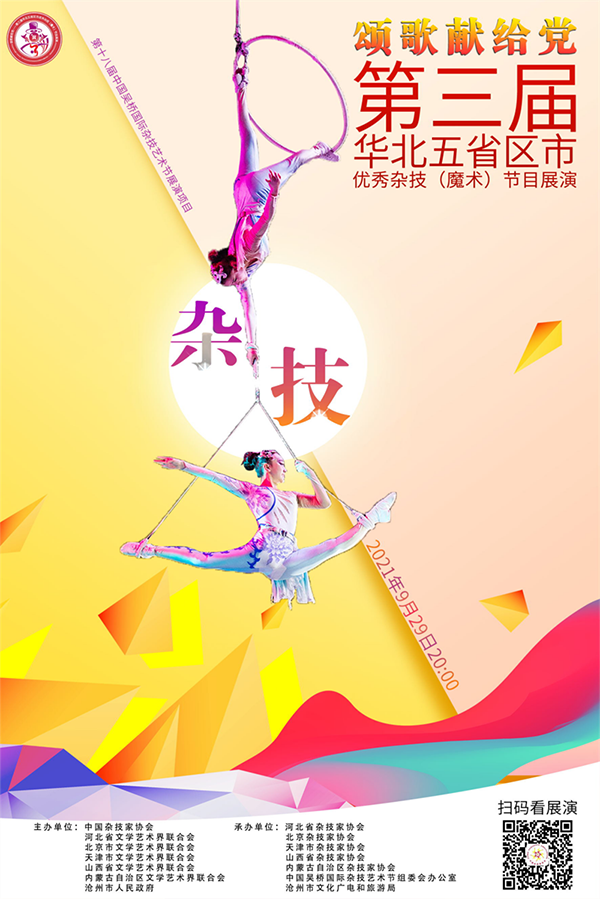 在广袤的华北大地上,京、津、冀、晋、蒙五省区市形成了以杂技为标志性特色的地域文化,拥有丰富的杂技文化和人才资源。本届展演活动由中国杂技家协会、河北省文联、北京市文联、天津市文联、山西省文联、内蒙古自治区文联、沧州市人民政府联合主办,河北省杂技家协会与京、津、晋、蒙四省区市杂技家协会、中国吴桥国际杂技艺术节组委会办公室、沧州市文化广电和旅游局等有关单位共同承办,旨在通过展演活动推动华北五省区市杂技(魔术)节目创新、人才培养和行业发展,搭建专业性、高层次的行业交流平台、作品展示平台,传承中华民族优秀传统文化,挖掘展示中华技艺瑰宝,弘扬民族精神。展演活动与中国吴桥国际杂技艺术节有机融合,作为第18届中国吴桥国际杂技艺术节重要板块进行展演,为广大杂技艺术家提供学习交流的契机和展示技艺的舞台,对京津冀协同发展具有重要的意义。