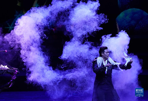 9月28日,演员在第18届中国吴桥国际杂技艺术节开幕式上表演魔术《秘境》。