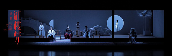 话剧《红楼梦》采取浪漫主义的手法,建构又解构了一场二元对立的虚幻梦境。