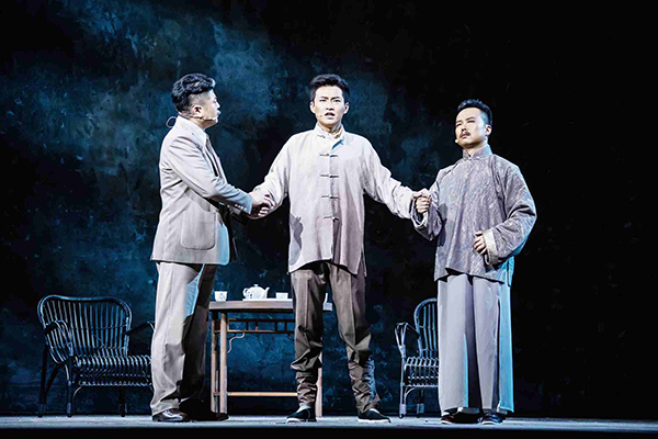 该剧涉及的事件多、时间跨度大、人物之间的关系相对也比较复杂,因此最终的戏剧展现基本都是正面陈述,各个场景和片段之间在舞台上实现了比较自然的过渡,但相比较而言,下半场因为有了叛徒白鑫这个能够和杨殷形成正面对冲的人物,也使得戏剧故事更加集中,戏剧矛盾更加激烈,戏剧呈现也就更加吸引观众。