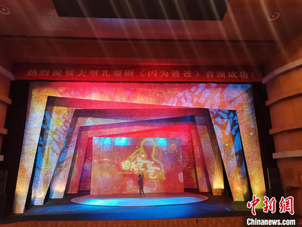 中新网南京11月11日电 (苏锦安 徐珊珊)11月10日晚,以江苏南通警界英模尤建华等人物为原型的儿童剧《因为爸爸》在更俗剧院成功首演。该剧由南通·通州“童声里的中国”少儿艺术创研活动基地、南通艺术剧院出品,南通艺术剧院话剧团演出。首演活动由南通市委宣传部、南通市文化广电和旅游局、南通市公安局联合主办,共500余名观众观演。