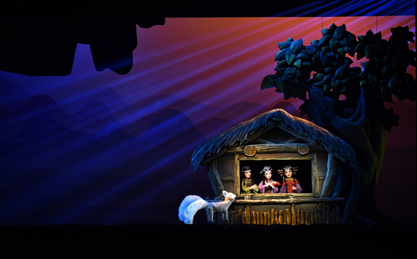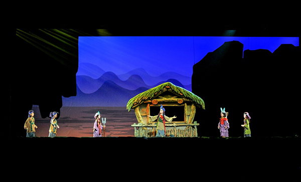 该剧融合了人偶同台的艺术表演形式,舞台上以木偶戏为主,穿插真人表演,人偶同台的表演形式处理得精准到位相得益彰,衔接自如完美融合,守本创新展示了木偶戏无穷的魅力。