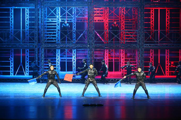在创排过程中,团队邀请北京特警进行培训,演员们在空闲时间站军姿、模仿警察神态、学习专业动作……饰演何平的杂技演员张鹏每天在训练、排练之余调整自己的仪容仪表和姿态动作,力求将人物表达对演员的身体形态需求内化成行为习惯,让自己“一上台就是一名警察”。