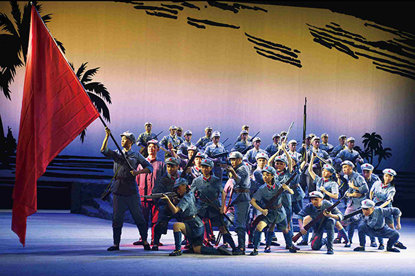 除了参与《伟大征程》演出,海南在舞台艺术创作方面也取得了不俗的成绩。现代琼剧《红旗不倒》以戏曲艺术的形式再现了琼崖革命的峥嵘岁月,通过唱念做打塑造了“23年红旗不倒”主要旗手冯白驹的英雄形象;舞蹈诗《黎族家园》扎根民族文化、激活地域资源,勾勒海南黎族人民的生活图景和文化习俗;音乐舞蹈史诗《解放海南岛》以跨越百年的壮阔历史展现共产党人的初心和使命;舞蹈《英雄,往北走》以肢体语言承载英雄情怀,这些作品入选文化和旅游部“庆祝中国共产党成立100周年舞台艺术精品创作工程”。其中,《红旗不倒》《黎族家园》与表现人类在现代化和城市化进程中与自然、环境、各种生灵休戚与共、相依相生的黎族山歌剧《呦呦鹿鸣》一道,入选中宣部、文化和旅游部、中国文联联合举办的庆祝中国共产党成立100周年优秀舞台艺术作品展演。此外,展现黎族同胞生产生活场景和悠久灿烂民族文化的舞蹈诗《锦绣家园》获第六届少数民族文艺会演圆梦奖——最佳剧目奖。这些作品为观众津津乐道,这些成绩已经成为海南艺术事业的亮丽名片。