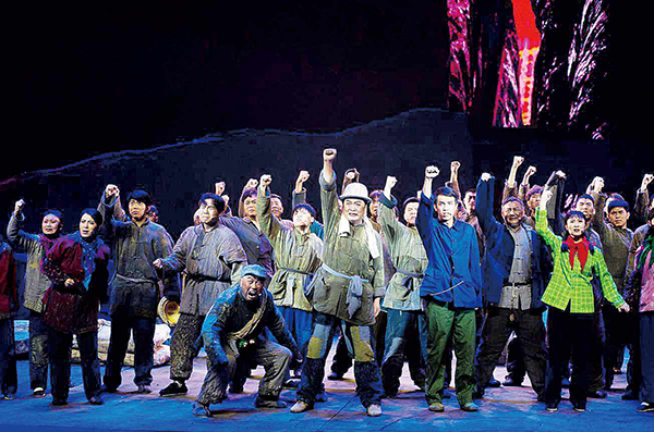 “没路,我们就得想办法找路,就得在这大山里头开出一条路!”舞台上,伴随着山地汉子“哼呦嘿呦”的呼号,观众瞬间被带入太行山嶙峋峭壁间封闭落后的小村——神仙居。30年,两代人,村民们前赴后继,用双手在悬崖绝壁之上“抠”出一条通天大道。