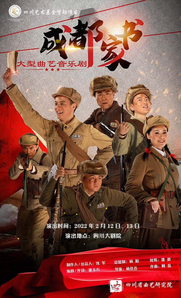 据介绍,大型曲艺音乐剧《成都家书》由知名编剧董玉方执笔,北京人艺导演杨佳音执导、四川曲艺研究院青年导演毛军豪参与导演,作曲家顾磊负责音乐。该剧以抗美援朝战争中十五军入朝作战为历史背景,讲述四川男儿在异国他乡英勇战斗、保家卫国期间,通过一封封“家书”传递亲情,弘扬家国情怀的动人故事。2021年7月22日至24日,《成都家书》在成都新声剧场连演三场,场场爆满,让不少观众意犹未尽。