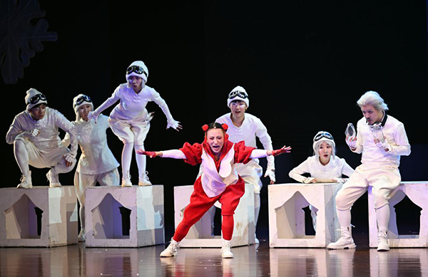 2月12日,演员在儿童音乐剧《冰墩墩雪容融之冰雪梦》中表演。新华社记者 金良快 摄