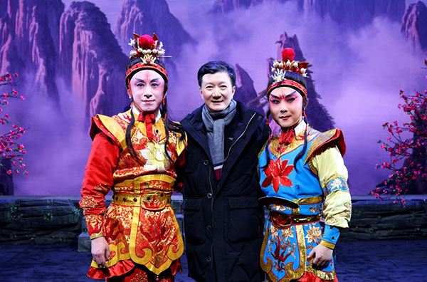 演出中,浙江京昆艺术中心党委书记、本次“浙江京昆新春演出周”总策划和监制翁国生一直坐在观众席后区的灯光操作台旁,综合调度着台上的演出。而先后主演少年英雄“沉香”的青年武生钱少波和黄永,都是翁国生一手传授辅导的学生,他们在舞台上的一招一式、一翻一打,都牵动着翁国生的心弦。黄永在之前的元宵京昆晚会演出时胯骨摔伤,胯部连走路都疼痛难忍,是吃了止痛药、贴了伤膏坚持上台的,令翁国生更加担心。直到看到黄永最后一个高难度表演技巧——手持“宝莲灯”和“莲花佛尘”在2.5米高的金色“二郎台”上“倒堕拿顶”“倔腰后空翻”腾空翻下,稳稳落地亮相时,翁国生终于长舒一口气,他告诉记者:“看学生演出比自己上台更紧张、更心累!”浙江省文化和旅游厅艺术处处长陈吉芬在看完《宝莲灯》的演出后,对全体剧组人员在新年期间放弃休息、倾情为杭城百姓送去文化大餐所付出的努力给予了表扬和鼓励,同时也充分肯定了京昆中心元宵佳节连演八台大戏的举措。