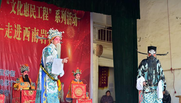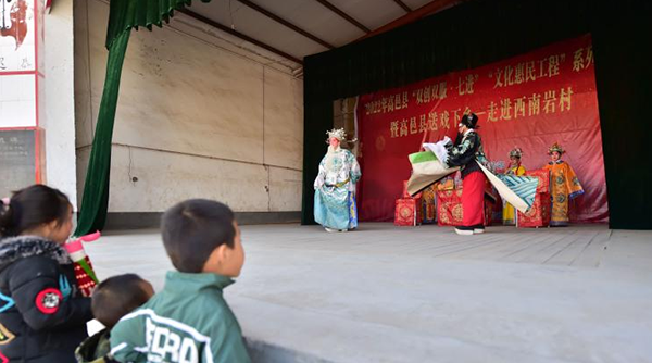 国家级非遗“南岩乱弹”的演员为当地群众表演传统剧目《杨金花夺印》。张晓峰摄