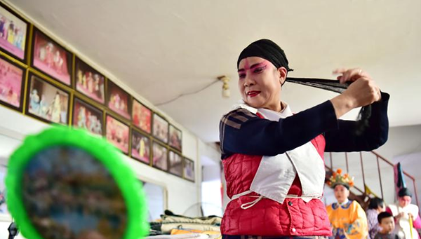 国家级非遗“南岩乱弹”的演员在化装。张晓峰摄