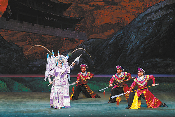 3月2日晚,国家大剧院的舞台上,年过五旬的李红艳风采依旧不减当年。她饰演的杨七娘初上场时,是一个怀春少女,李红艳用花旦的方式展现七娘的娇俏妩媚;洞房之夜,七郎不肯拜堂,李红艳以似波涌般的水袖表达七娘内心的气恼;过铁牌关时,七娘女扮男装,李红艳显示出其英姿勃发一面;天波府哭灵,是李红艳全场“文戏”表演的精华,她大段的青衣唱腔梅派韵味十足,凄美委婉催人泪下;最后一场,血战辽兵,这是全场“武戏”的精华,作为一名刀马旦,李红艳潇洒干练的武功技艺得到充分的展示,尤其是反手接枪,丝毫无误,赢得观众掌声。
