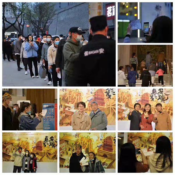 3月26日,演出开始前,剧场内外聚满了前来看戏的观众,不少“五刷”“三刷”的观众依然饱含着热情地在海报前合影留念,并称话剧《长安第二碗》是一部有滋有味、怎么也看不够的好戏,每次走进剧场都会有新的感悟,让人回味无穷。